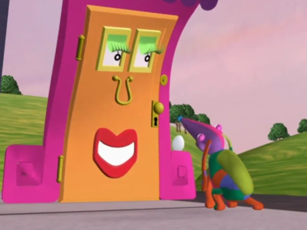 Doris the Door gives Plush an egg to give to Mop, who is making egg drop soup. She tells him not to drop it, or else it will break. Plush understands, and he starts to walk with the egg when he accidentally steps on a roller skate which causes him to roll uncontrollably, and he even flies in the air. Luckily, he catches the egg in time with his ears.